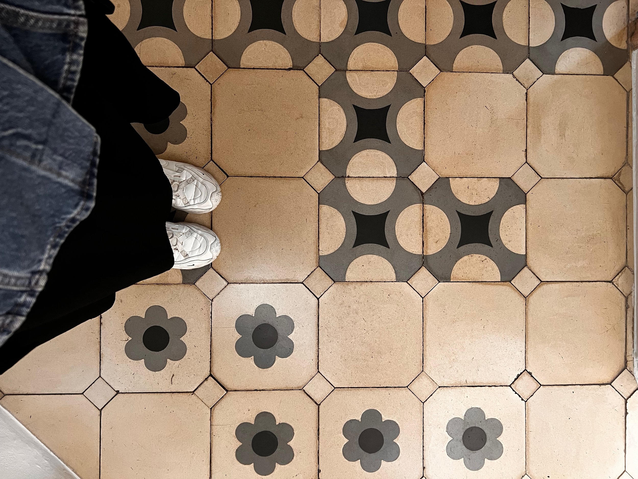 Not many pictures of myself this trip, just a couple of selfies and a single shot Hugo took of me on our lazy lunch day, but I always love a good floor tile.